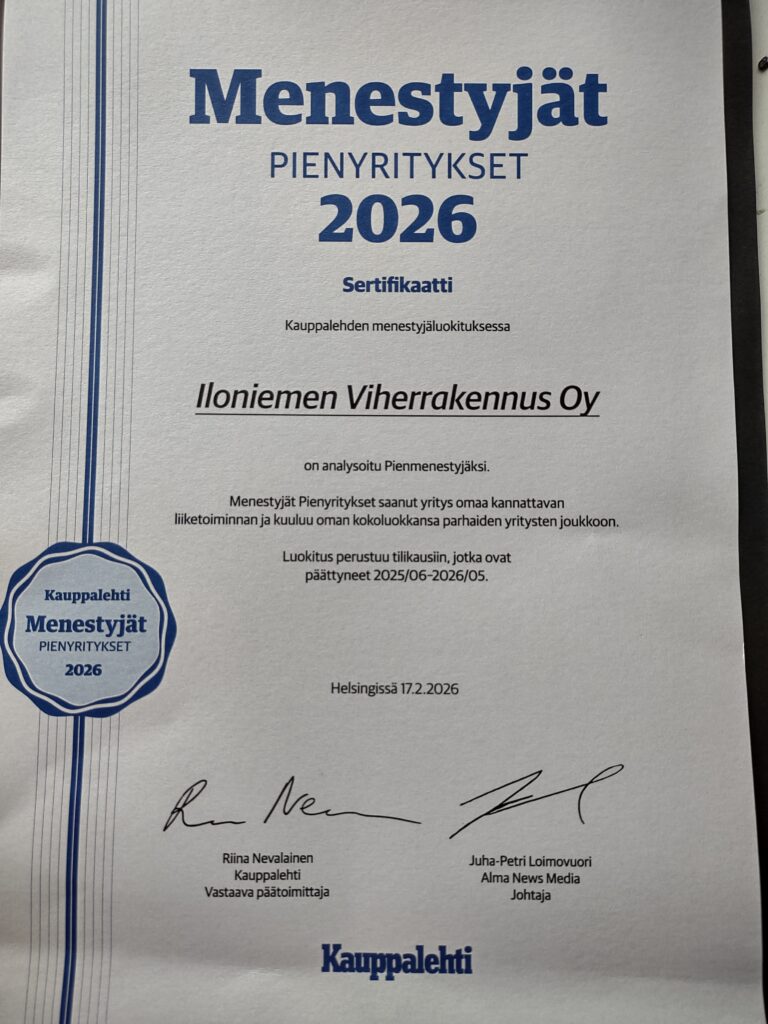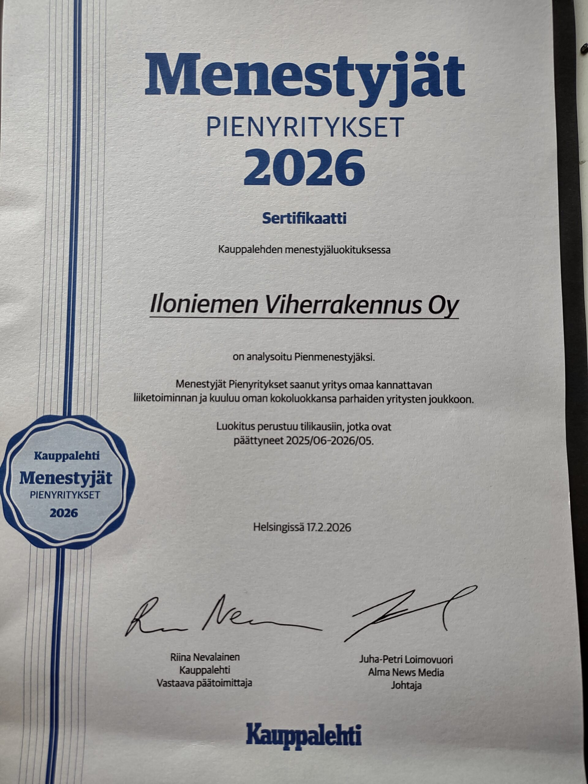 ILONIEMEN VIHERRAKENNUS on Salossa, Kuusjoen Raatalassa toimiva perheyritys. Olemme vaikuttaneet piharakentamisessa jo 25 vuotta.